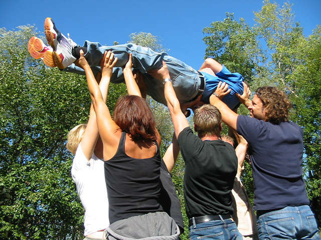 Aktion: Kooperationsspiele – Die Auszubildenden lernen sich, den Seminarort und die Trainer mittels verschiedener Aufgaben kennen.